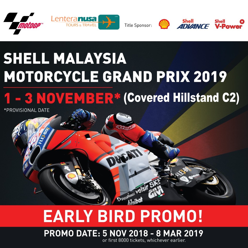 Harga paket trip MotoGP Malaysia ini sewaktu-waktu dapat berubah. VR46 Tribune Tiket MotoGP Sepang 1 - 3 Nov 2019.
